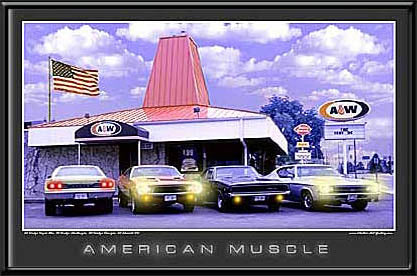 The 70's Mopar Era. The Rolling Stones, Grateful Dead & Detroit's big engine Muscle Cars - all classic memories of the 60s and 70s. A fun time when cubic inches were more important than cup holders. Framed picture with LED lights from Electric Art. Mini Light Bulbs in '70 Barracuda and '72 Dodge Challenger headlights. Red and Yellow L.E.D. lights accent parking lights.